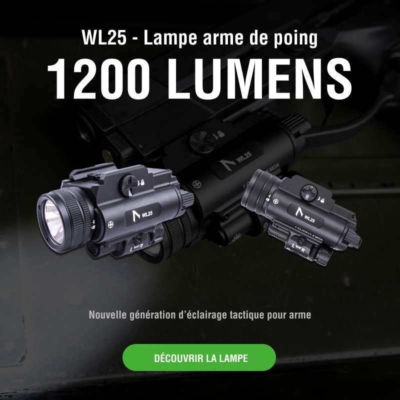 WL25 - Lampe arme de poing - 1200 Lumens - Laser Vert Intégré - Compatible Multi-Rails