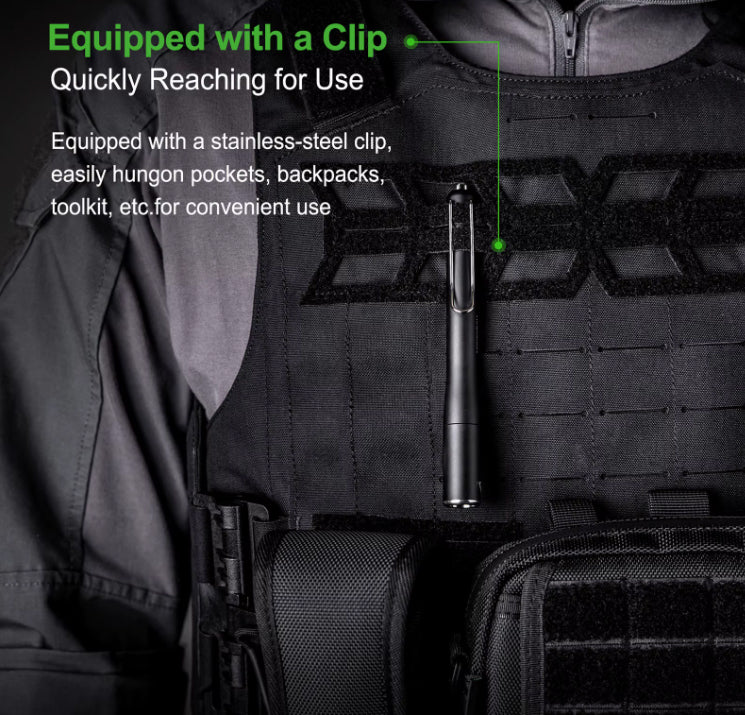 Conçue pour répondre aux exigences d'une utilisation quotidienne par les forces de l'ordre, la construction en aluminium de la K33 et son indice de résistance à l'eau IPX7 signifient que vous pouvez la déployer dans toutes les conditions météorologiques. Le format de la taille d'un stylo se fixe solidement à votre uniforme ou à votre gilet tactique, offrant un accès immédiat tout en conservant une apparence professionnelle.
