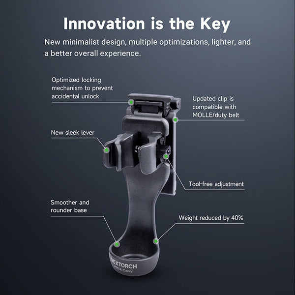 Le holster Nextorch V55/V55L est un système de port Quick-Draw (NQD) nouvelle génération offrant une rétention positive et un déploiement instantané de votre lampe tactique. Construit en nylon renforcé de fibre de verre pour une durabilité optimale en service, ce holster garantit un accès immédiat à votre éclairage tout en maintenant une sécurité maximale lors des poursuites et interventions dynamiques.
