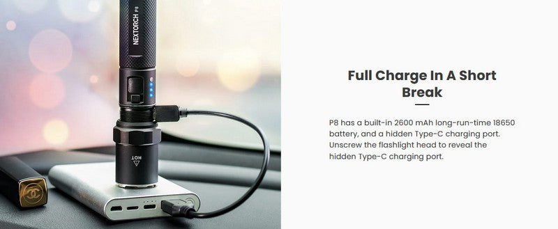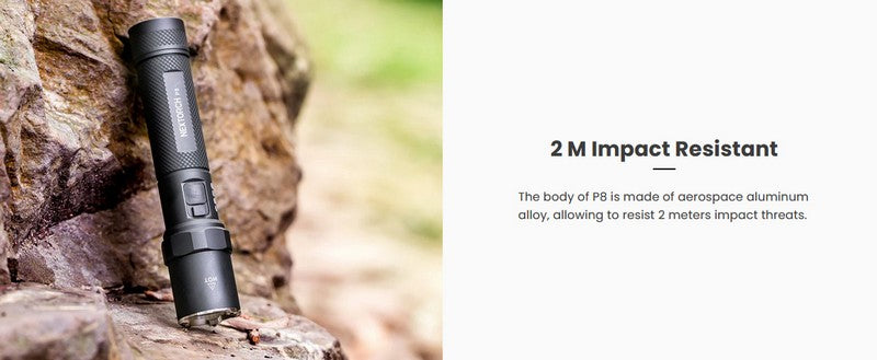Toutes ces caractéristiques font de la lampe Nextorch P8 un choix idéal pour ceux qui désirent une excellente lampe de poche EDC rechargeable polyvalente et compacte.