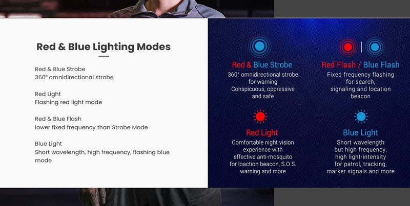 Cette lampe Nextorch P84 est équipée de lumière Rouge et Bleue omnidirectionnelle à 360°, (signal de détresse, de positionnement ou d’urgence),