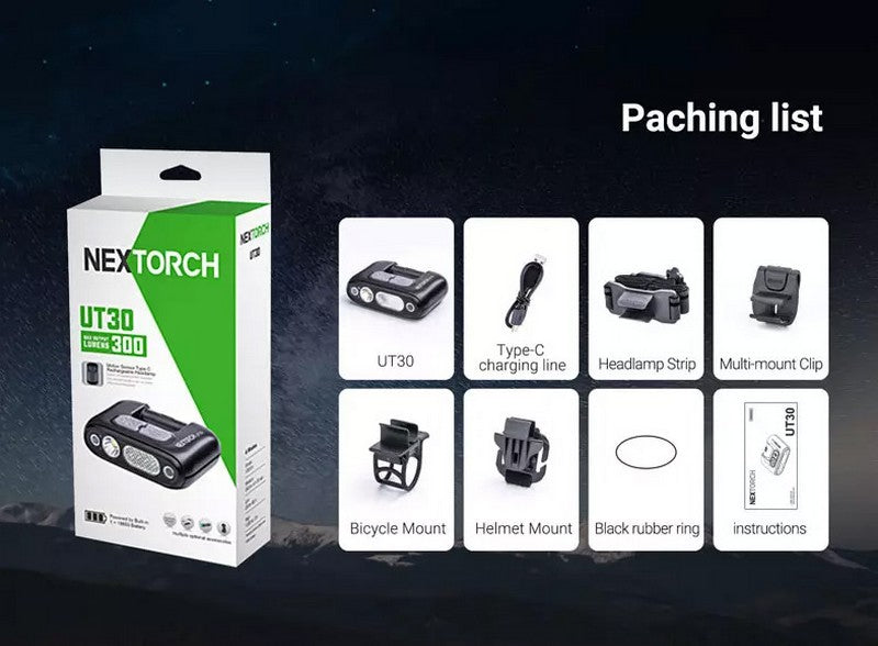 La lampe Nextorch UT30 est une petite lampe portable qui offre trois sources lumineuses différentes, une lumière blanche Spotlight de 220 lumens, une lumière blanche Floodlight de 140 lumens, une lumière rouge de 4 lumens, elle est tout spécialement conçue pour une utilisation mains libres pendant les activités de plein air et l'exploration.